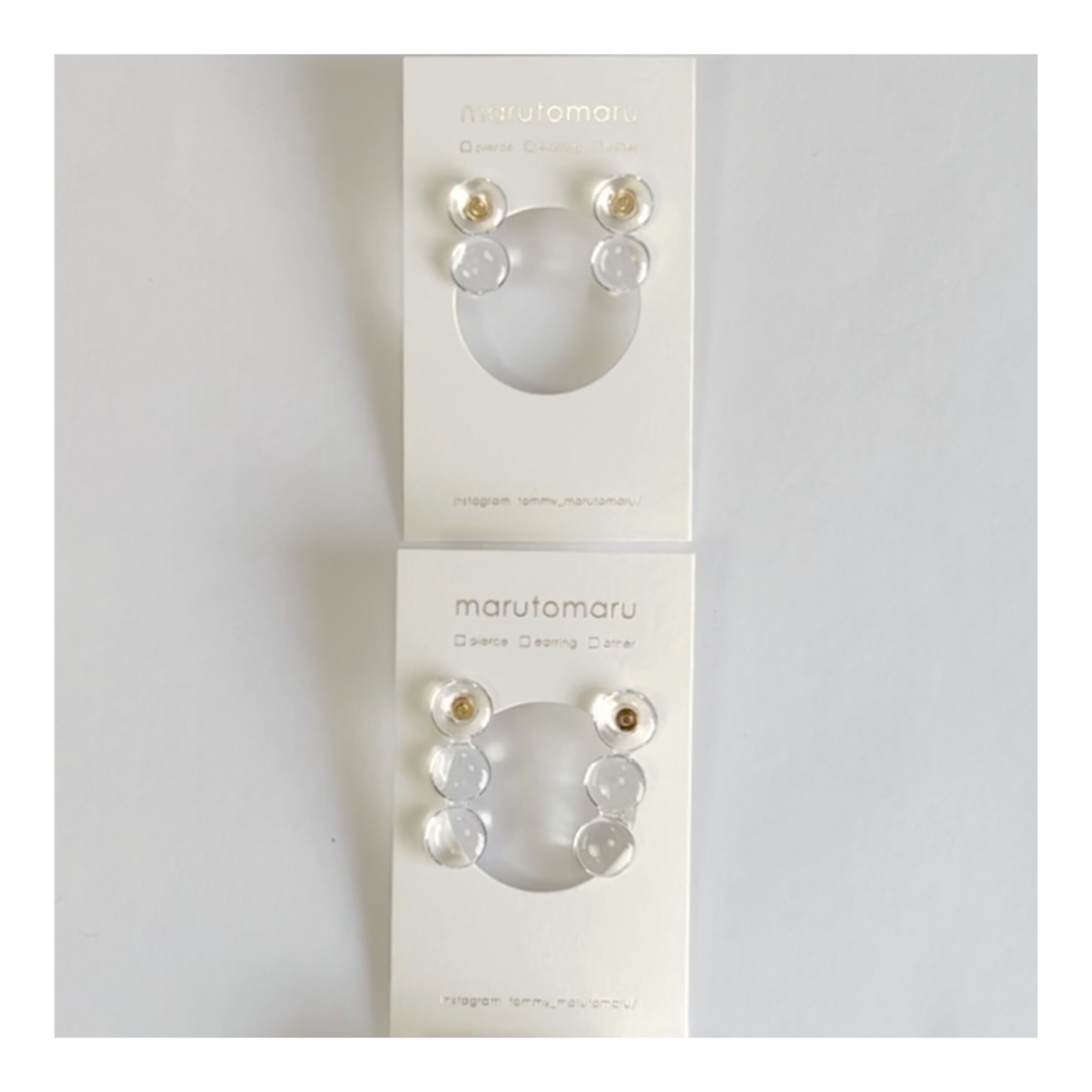 ピアスにはキャッチと下向き防止キャッチの2つをお付けします。お好みの方をお使いください。